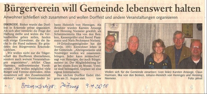 Der Bürgerverein Erkerode/Lucklum e.V. ist ein Anlaufpunkt für alle, die unsere Gemeinschaft lieben und stärken möchten! Ein Verein für die Dörfer Erkerode und Lucklum der Samtgemeinde Sickte im Landkreis Wolfenbüttel, Niedersachsen.